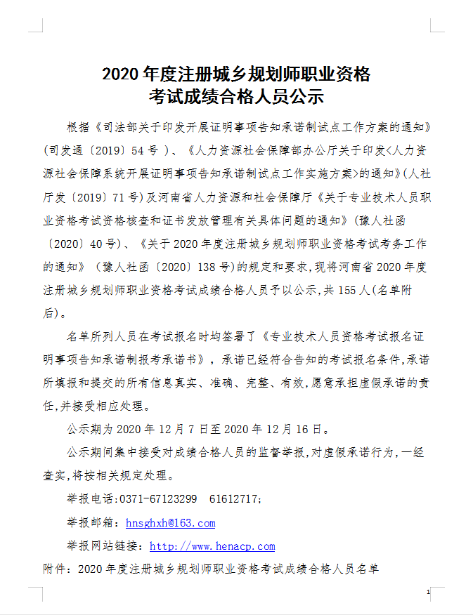河南省2024年度注册城乡规划师职业资格考试成绩合格人员公示及资格审查公告