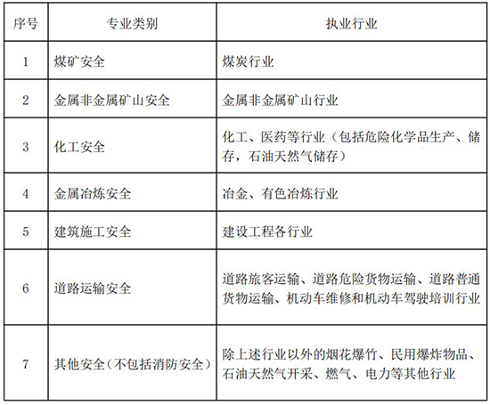 各专业类别注册安全工程师